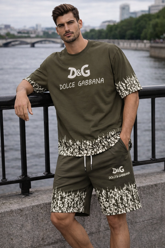تیشرت شلوارک آبرنگی جنس پنبه چاپ D&G