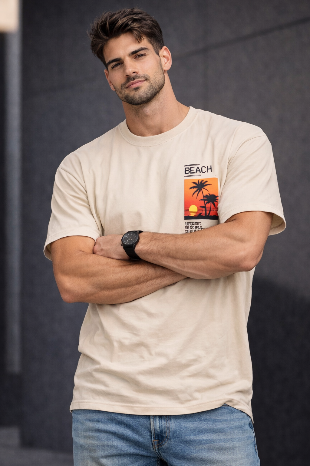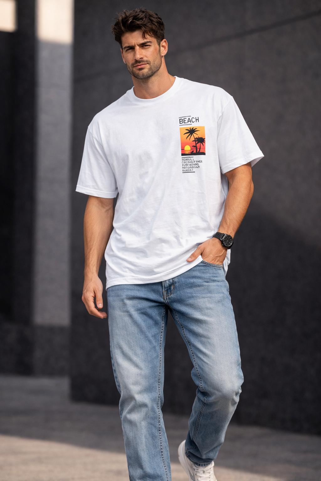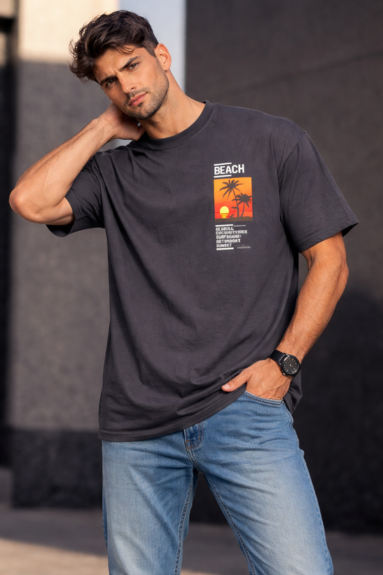 تیشرت تک اسپرت جنس پنبه با طرح زیبای غروب آفتاب